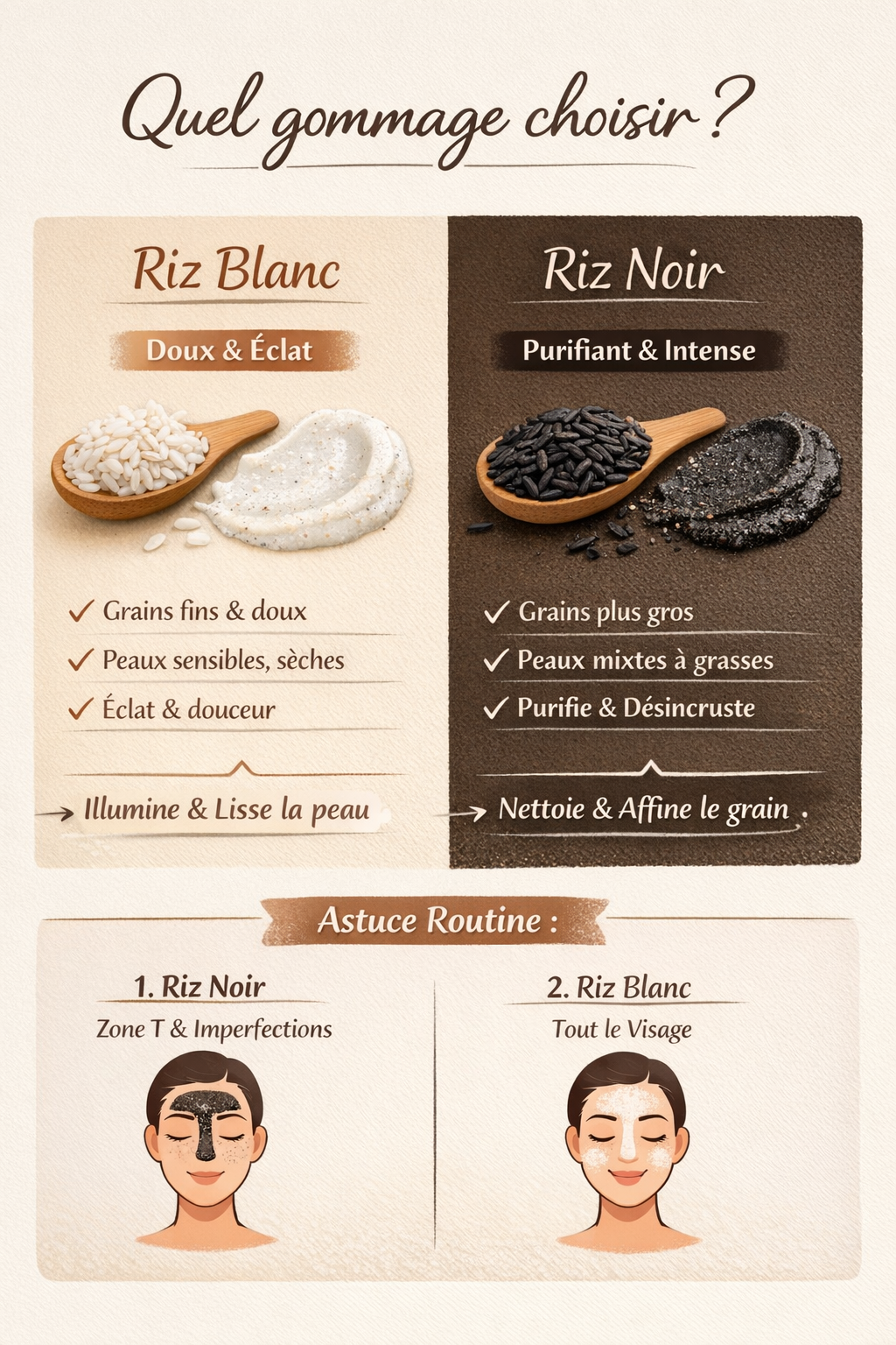 🌾 Le riz, reconnu pour ses propriétés éclaircissantes et lissantes, aide à exfolier en douceur, éliminer les cellules mortes et révéler une peau plus douce, plus lumineuse et visiblement revitalisée, tandis que la niacinamide agit en profondeur pour unifier le teint, resserrer l’apparence des pores et réguler l’excès de sébum.